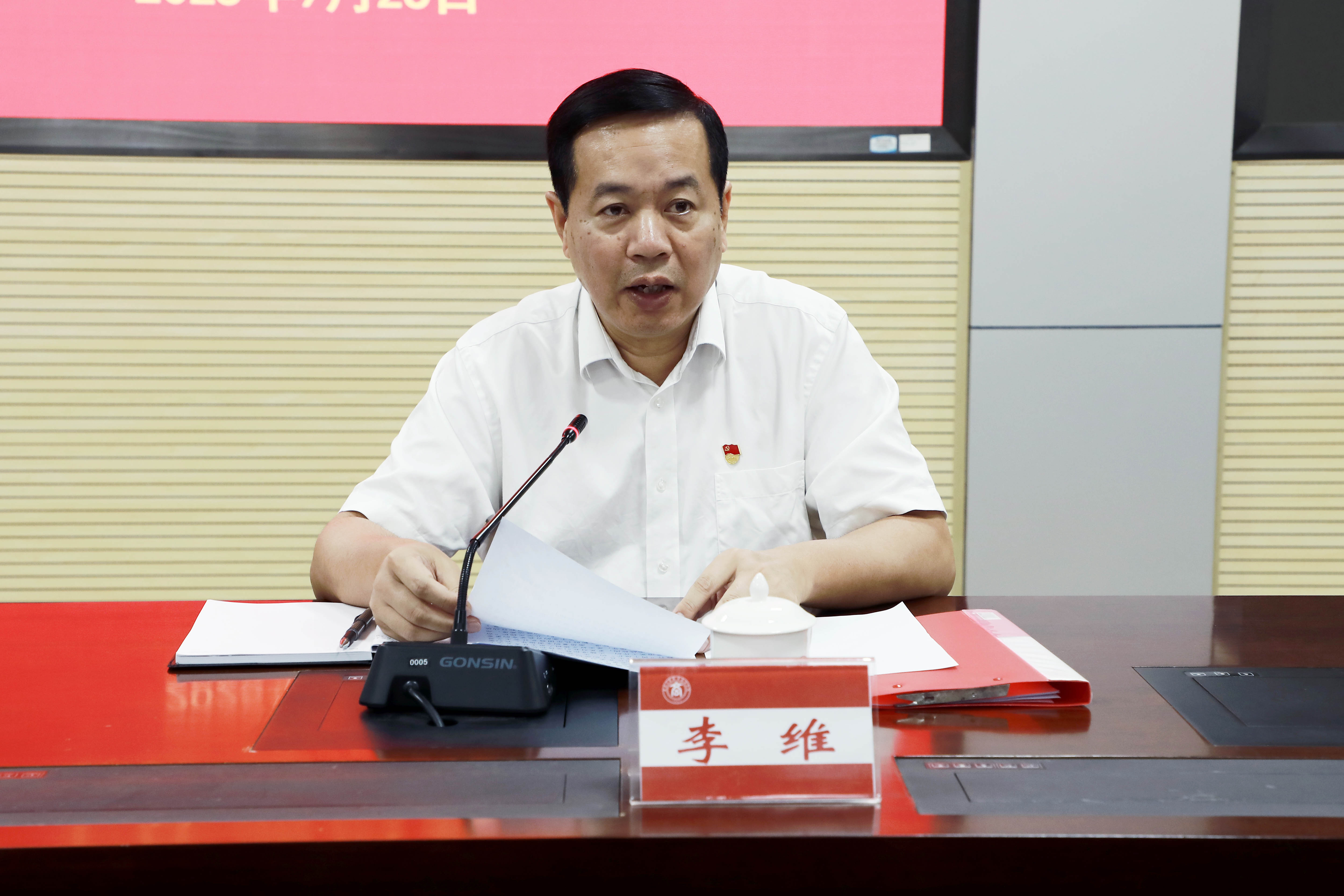广西工商职业技术学院党委书记李维主持会议并作表态发言