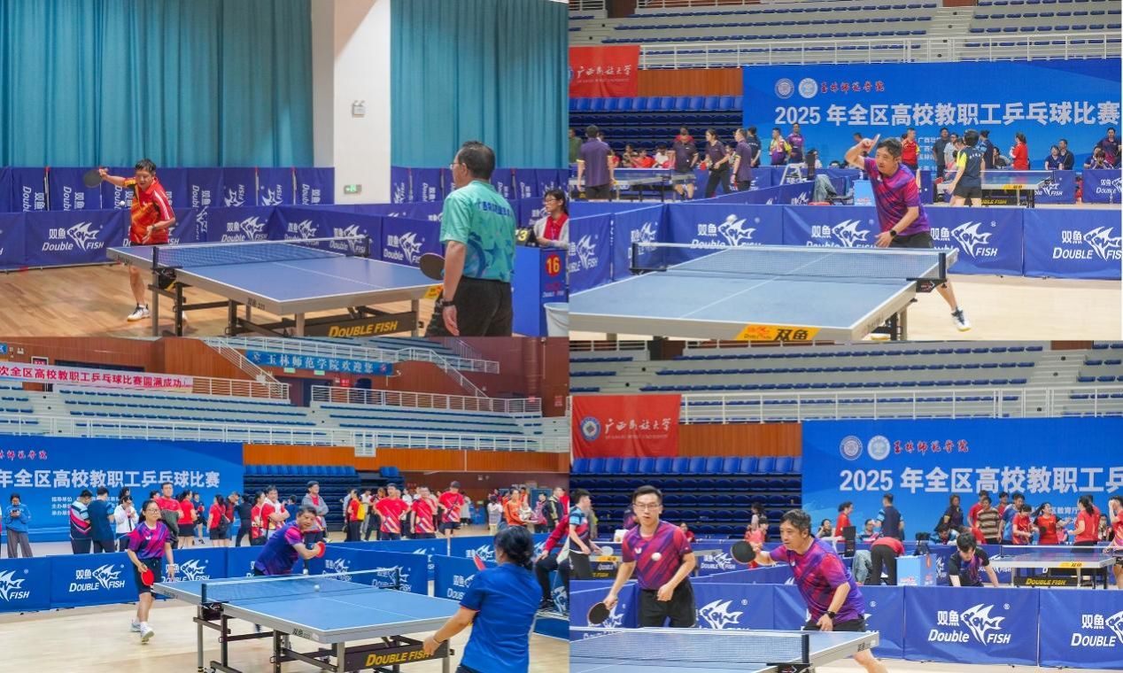 10月23日至26日,由广西壮族自治区教育厅指导、广西学校体育卫生艺术学会主办、玉林师范学院承办的全区高校教职工乒乓球比赛在玉林师范学院成功举办。本次比赛共有来自全区高校的33支代表队、479名运动员和教练员参加。我校由党委副书记、工会主席安仲文带队参赛并作为队员出战。