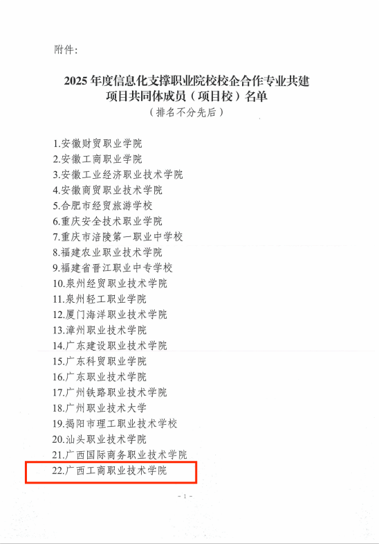 近日,教育部教育技术与资源发展中心(中央电化教育馆)公布2025年度“信息化支撑职业院校校企合作专业共建项目”共同体成员名单,经过严格的资格审查与专家评议,我校成功入选成为项目共同体成员。