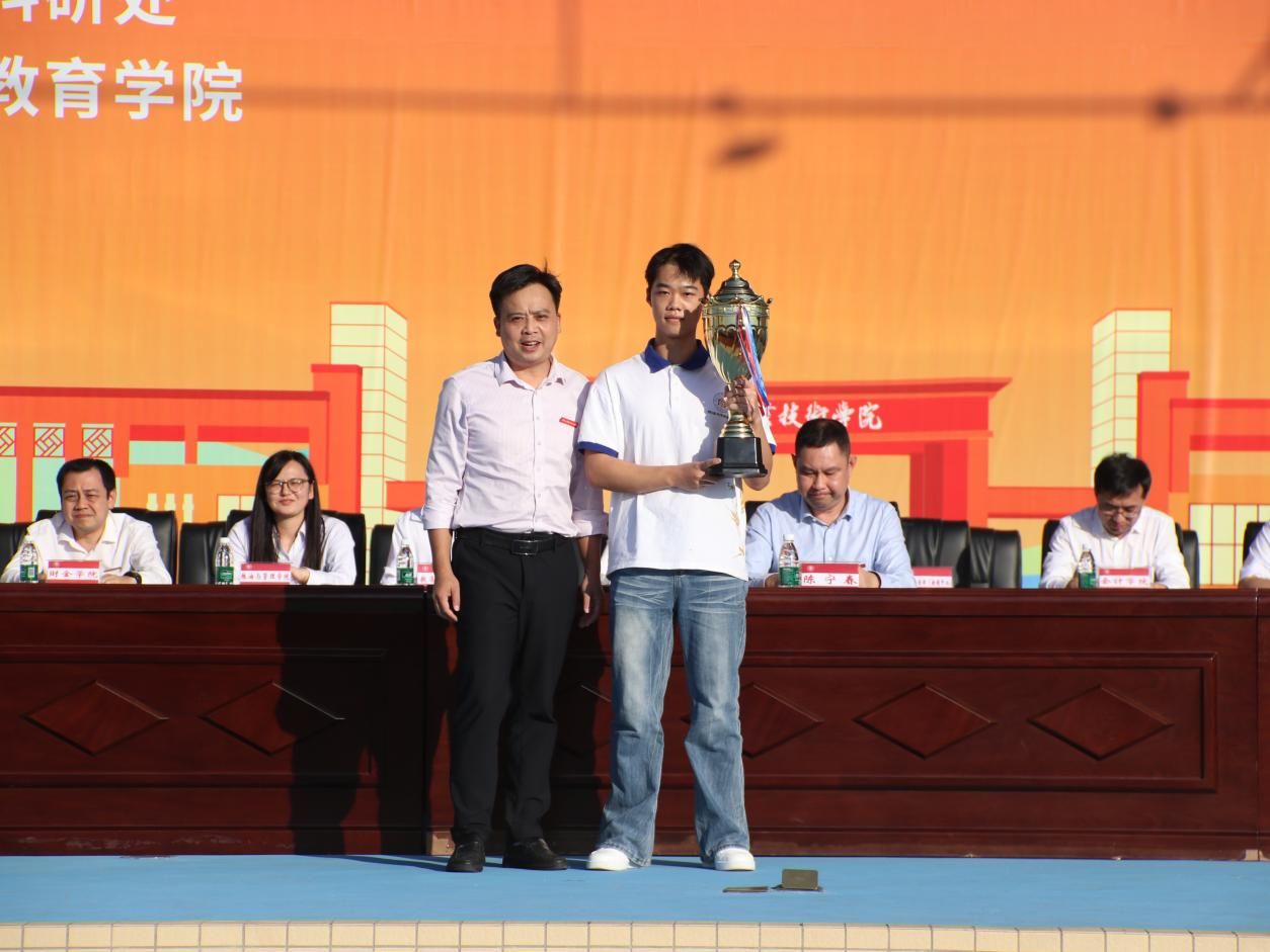 闭幕式上,本届运动会总裁判长陆长英宣布本届运动会的比赛成绩,粮油与管理学院荣获奖牌榜第一名,会计学院荣获奖牌榜第二名,经贸与康旅学院荣获奖牌榜第三名,党委宣传部、党委学生工作部、教务科研处相关负责人为获奖单位颁奖。
