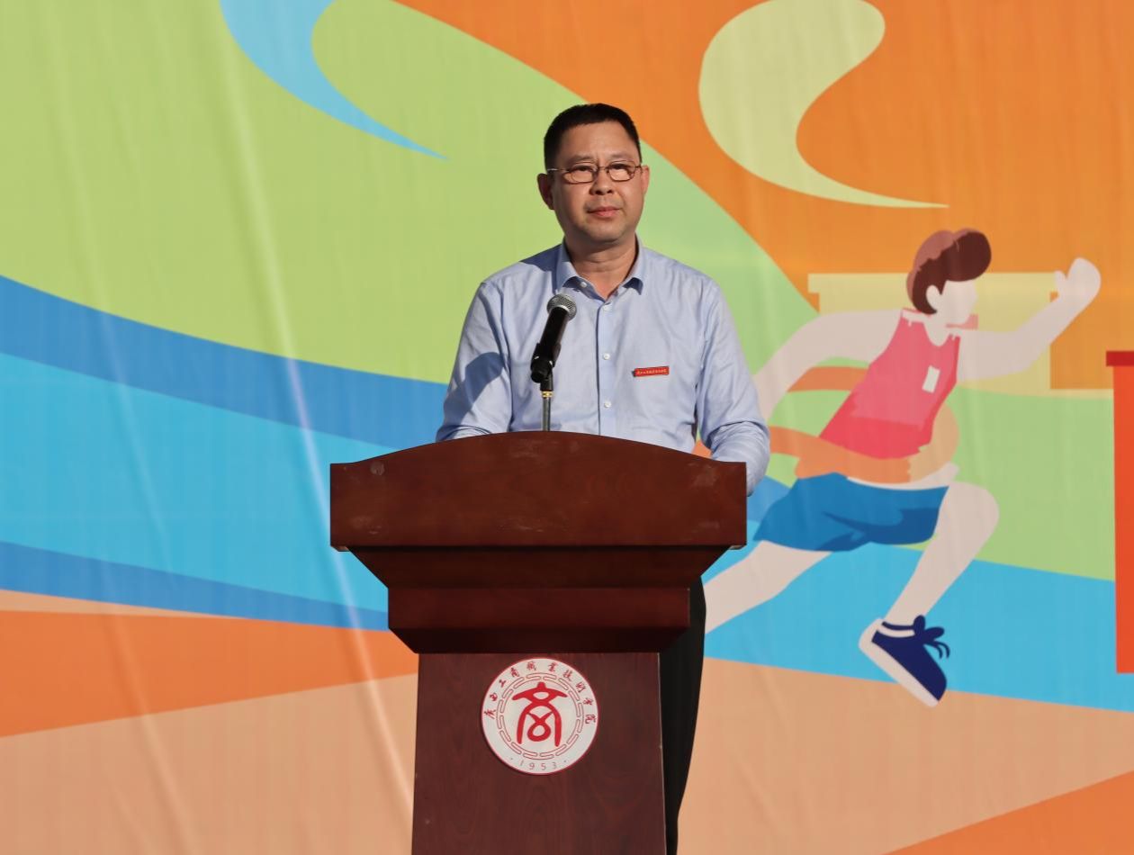 陈宁春为闭幕式致辞,他向取得优异成绩的运动员表示祝贺,对为运动会辛勤付出的各位裁判员、志愿者以及全体工作人员表示衷心的感谢。他表示,运动场上洋溢着青春活力与拼搏热情,运动员以出色表现诠释了“更快、更高、更强、更团结”的奥林匹克精神。个人项目展现挑战自我的英姿,集体项目彰显同心协力的团队力量,师生助威、宣传报道与后勤服务等温暖瞬间与竞技精彩交相辉映,共同构成运动会亮丽风景,实现了“赛出风格、赛出友谊、赛出水平”。陈宁春强调,体育运动不仅是强健体魄的途径,更是锤炼意志、培养团队协作能力的重要课堂,赛场上的拼搏精神,与专业学习中攻克技术难题、实训实践中精益求精的态度一脉相承。他希望同学们践行“每天锻炼一小时,健康工作五十年,幸福生活一辈子”理念,自觉养成体育锻炼习惯;希望全体师生将运动精神转化为奋进动力,追求卓越、勇攀高峰,同学们要把赛场的坚持专注融入学习训练,挑战自我,老师们要以饱满热情投身教学,助力培养新时代技术技能人才。