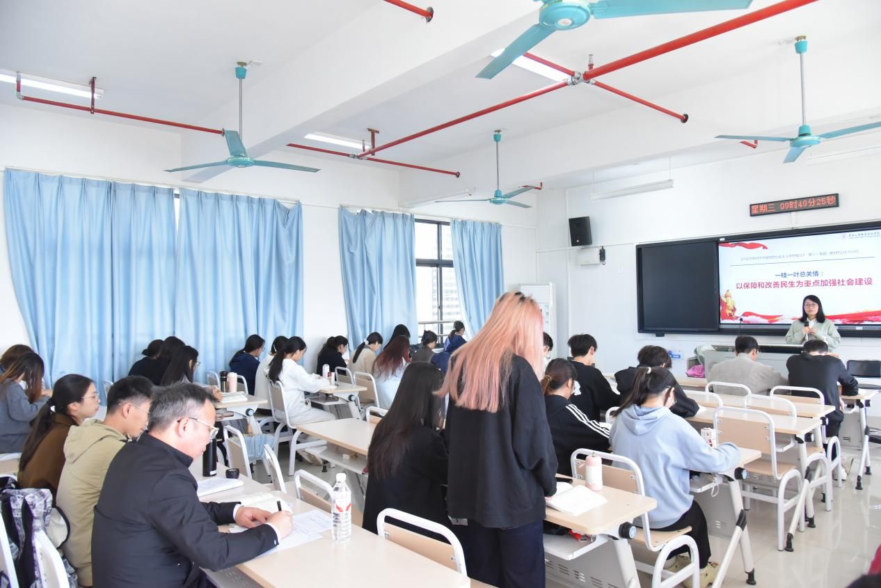 专题课后,阙勇平副校长听取了韦慧妮老师为人力2403班讲授的专题思政课——《以保障和改善民生为重点加强社会建设》。韦慧妮老师围绕“民生问题为什么如此重要?怎样让老百姓的日子越过越好?怎样推进社会治理现代化?”等核心问题,结合历史典故、时事热点和自身经历进行生动讲解,引导学生理解民生建设的重要意义,切实提升了学生的价值认同和社会责任感。