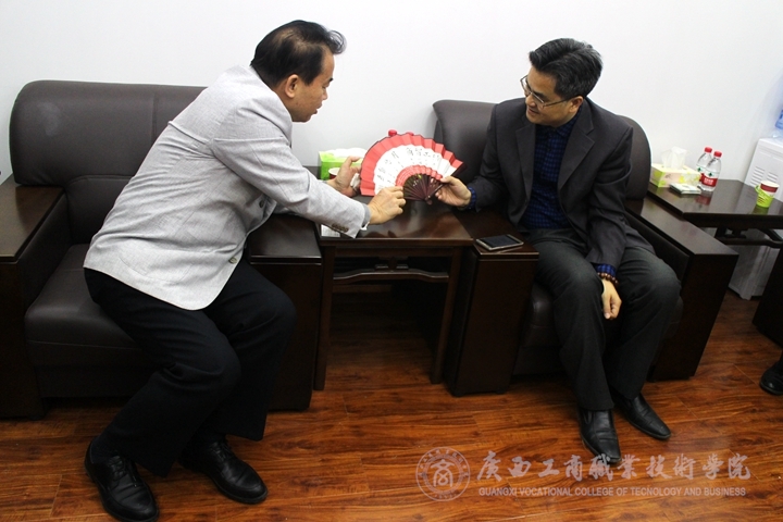 讲座开始前,陈杰院长、李维副院长热情接待了阎教授,陈杰院长向其简单介绍我院基本情况,并将富有工商特色的校园文化扇赠与阎教授。
