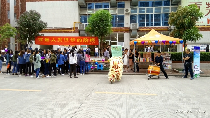 4月24日,以“书是人类进步的阶梯”为主题的图书馆新书.刊.报现场巡展宣传活动在学生公寓中楼校道拉开帷幕,伴随着学院舞狮队密集响亮的铜鼓声及雄狮起伏跳跃精彩表演,由李龙副馆长宣布活动开始,正式拉开序幕。现场活动内容丰富,场面热烈。到场同学兴致勃勃,详细览阅海报、了解世界读书日、学院图书馆概况等,勇跃参与阅览新书刊,还包括参与猜字谜、成语接龙、知识抢答等等,大家纷纷体会到阅读确能开拓视野,提升智慧。随着活动的进行,同学们获得了丰厚的奖品,兴奋之情溢于言表。此次活动取得圆满成功。