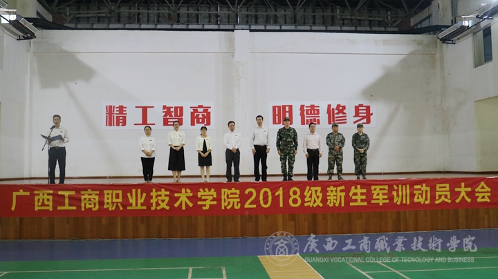 2018年10月22日上午,广西工商职业技术学院2018级新生军训动员大会在鹏飞校区文体馆二楼隆重举行。参加本次动员大会的有:学院副院长李维和武警广西总队机动支队三大队大队长陈宗沛出席了会议,学院教务科研处处长阙勇平、后勤管理处处长助理谭爵玺;各系党总支书记、各系副主任、2018级辅导员、学工秘书、党委学生工作部相关老师以及2018级全体学生参加了本次动员大会。本次军训动员大会由学工部副部长林雯主持。