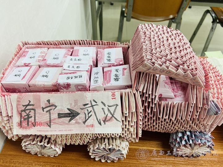 参赛作品主要使用的材料是废弃的点钞练功券,由各个参赛队伍结合自身的创意,围绕主题折叠出不同造型的作品,历时一星期精心准备。本次比赛旨在鼓励全系学生充分利用课余时间,培养技能,提高职业技能水平和动手能力,增强创新意识。