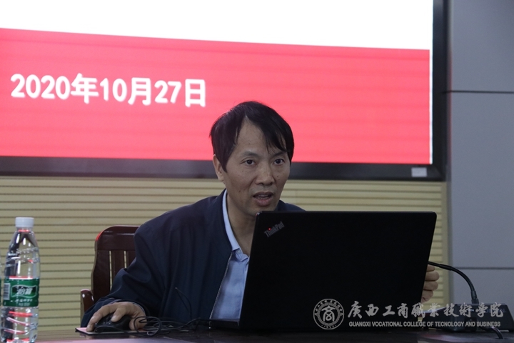 2020年10月27日上午,在鹏飞校区教学楼2119会议室举办主题为“新商科人才培养”的创新交流会,并邀请两位校外专家对校内老师和2020年广西高职院校技能大赛企业管理模拟沙盘赛项指导老师进行讲座和交流指导,他们分别是广西财经学院人事处处长(原工商管理学院院长)梁儒谦教授、南宁师范大学职业技术教育学院数字媒体技术系主任郑小军教授。本次交流会由我校经贸学院院长张煌强主持。