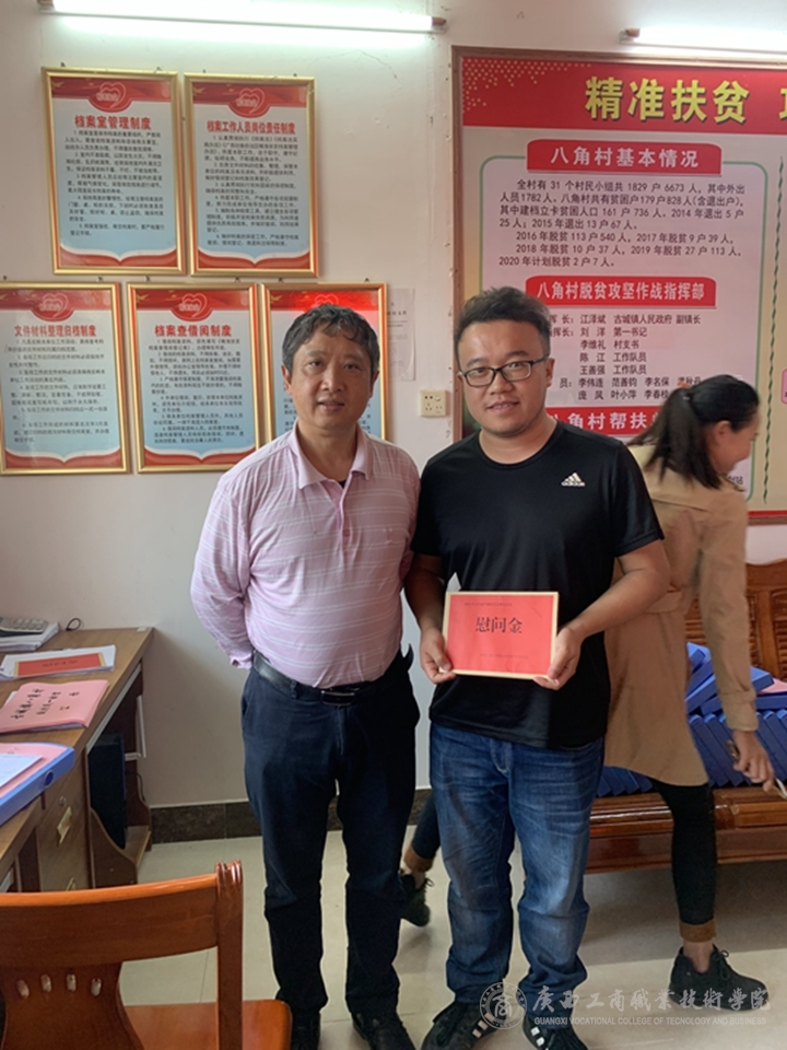 2021年2月3日-4日,由学院党委书记覃武云同志率队,副院长安仲文同志、党委组织部、招生就业工作处、工会(离退休工作办公室)、财金学院、会计学院、管理学院等部门代表一行9人赴陆川县古城镇八角村、良村村,走访慰问驻村党组织第一书记、村干部、贫困户代表。
