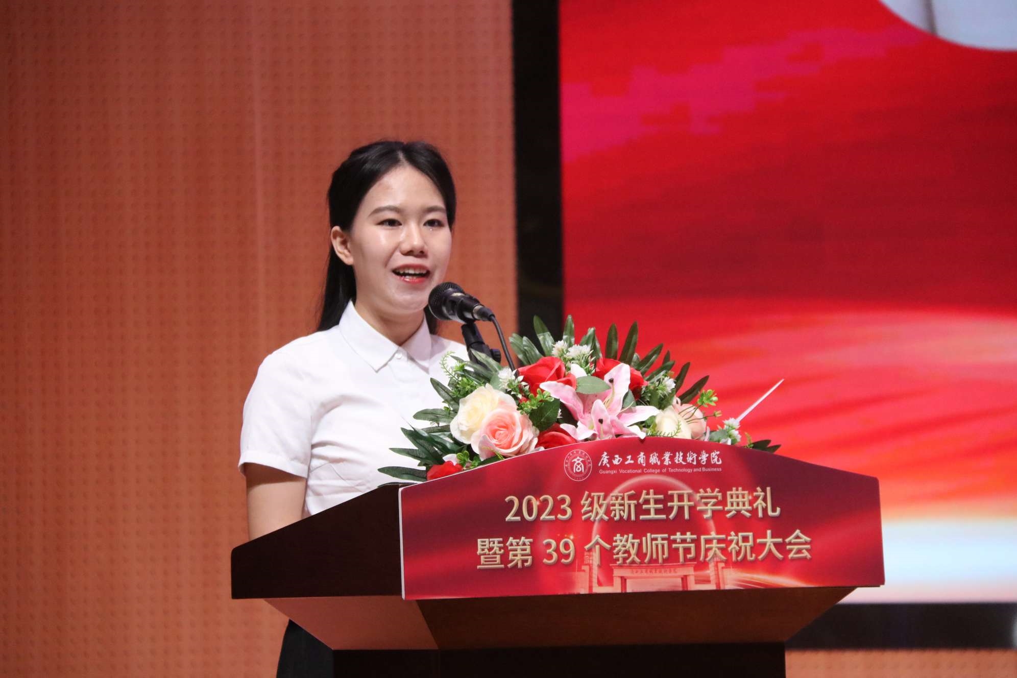 会上,来自管理学院物流2207班的梁清睿作为在校生代表作发言,与新同学交流了自己的在校学习经验,并向学弟学妹送上祝福和鼓励。来自粮油康旅学院粮食储运与质量安全2301班的邓林岸代表2023级新生发言,表示将会尽快适应新的大学生活,努力学习专业知识,为今后的理想与人生目标打下坚实的基础。