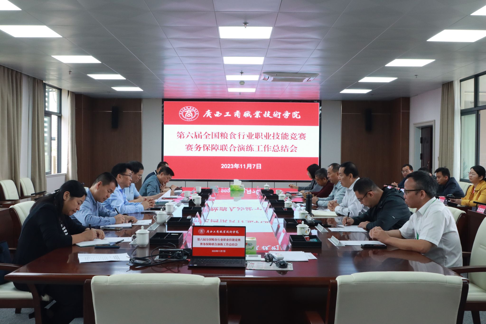 联合演练结束后,在武鸣校区A1-219会议室召开第六届全国粮食行业职业技能竞赛赛务保障联合演练工作总结会。会上,李维院长就第六届全国粮食行业职业技能竞赛筹办进展和赛务保障、赛场流转、应急预案等具体工作细节进行了全面的汇报。