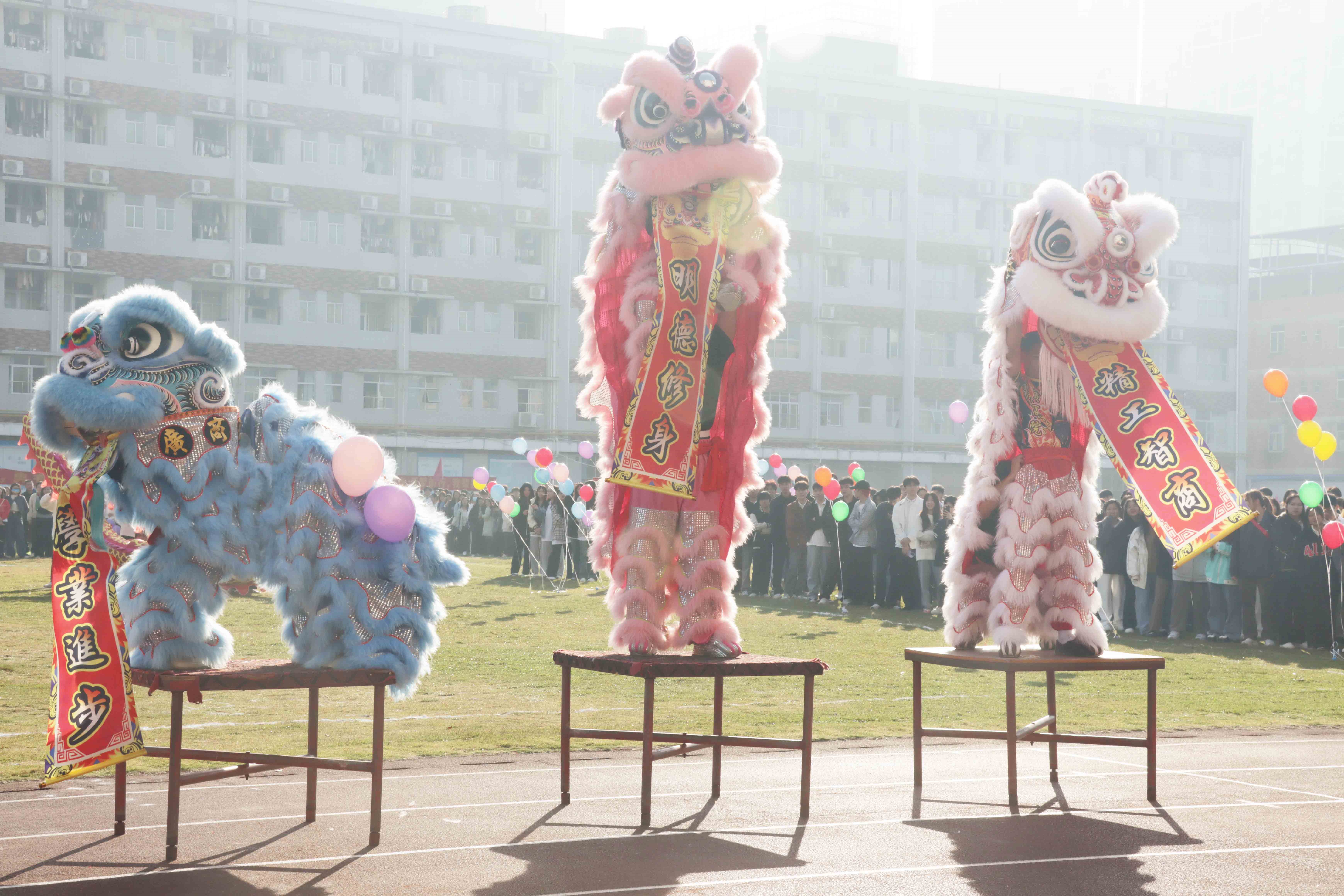 锣声响、鼓声振,龙腾生风、醒狮舞动。伴随着舞龙舞狮的节拍,11月20日上午,2023年秋季学生运动会(鹏飞、中尧校区)顺利拉开帷幕。