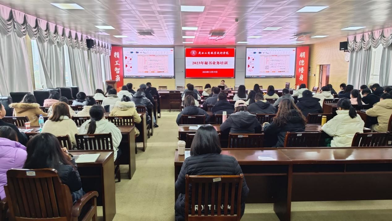 为进一步加强和规范文秘工作,提升各部门、各单位办文、办会、办事的综合能力和水平,2023年12月19日上午,我院在鹏飞校区教学楼2119会议室召开2023年秘书业务培训班。本次培训由党委办公室(学院办公室)主任李筱翎主持,各部门、各单位OA秘书、2022年以来入职教职工及其他需要了解文秘工作的教职工参加培训。
