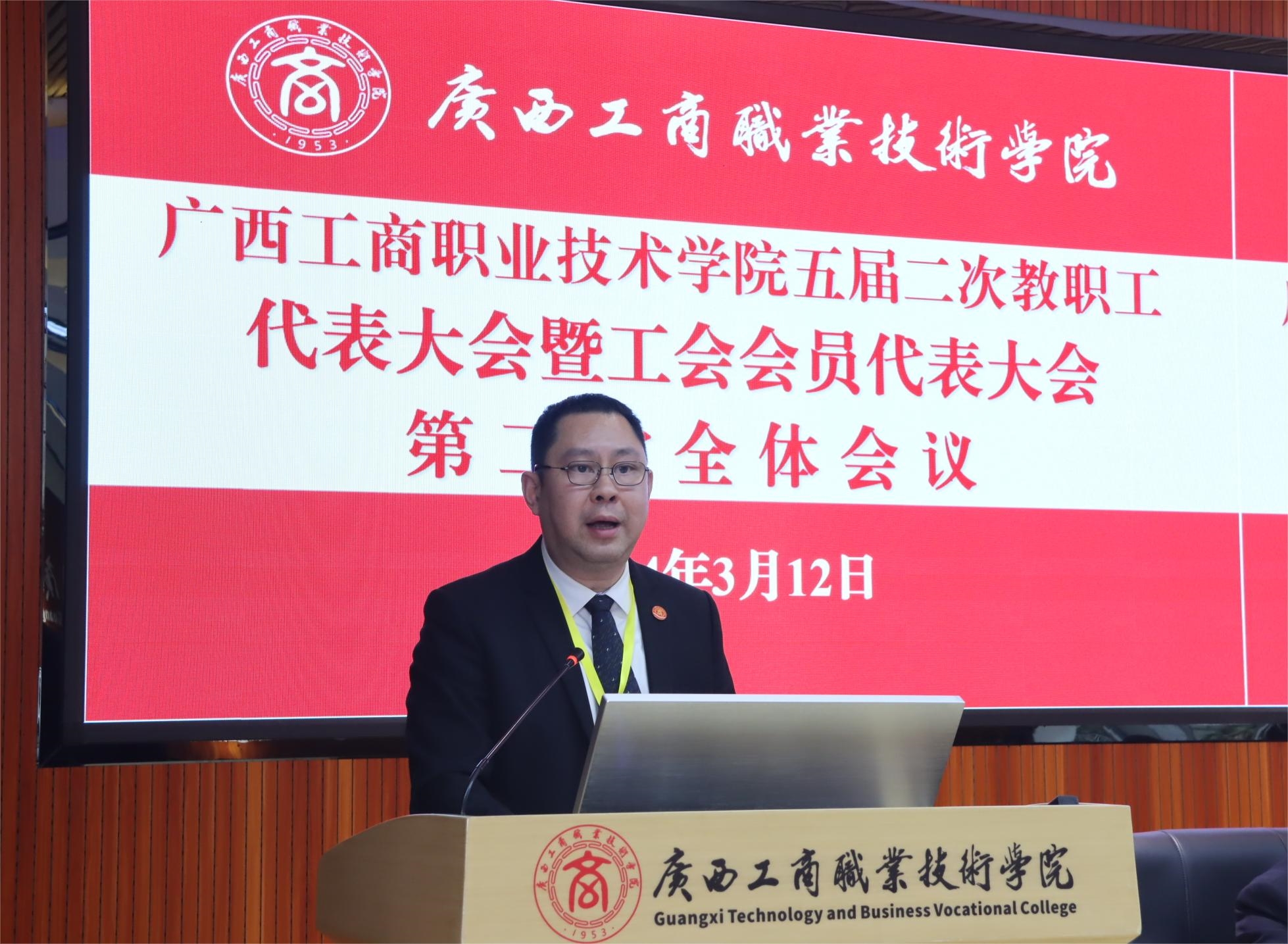 凝心聚力担使命,奋楫扬帆新征程。3月12日下午,我院五届二次教职工代表大会暨工会会员代表大会在鹏飞校区2145会议室召开。学院院长刘进作学院工作报告,大会由学院副院长陈宁春主持。学院领导、本届教代会和工会会员正式代表、列席代表、特邀代表参加会议。