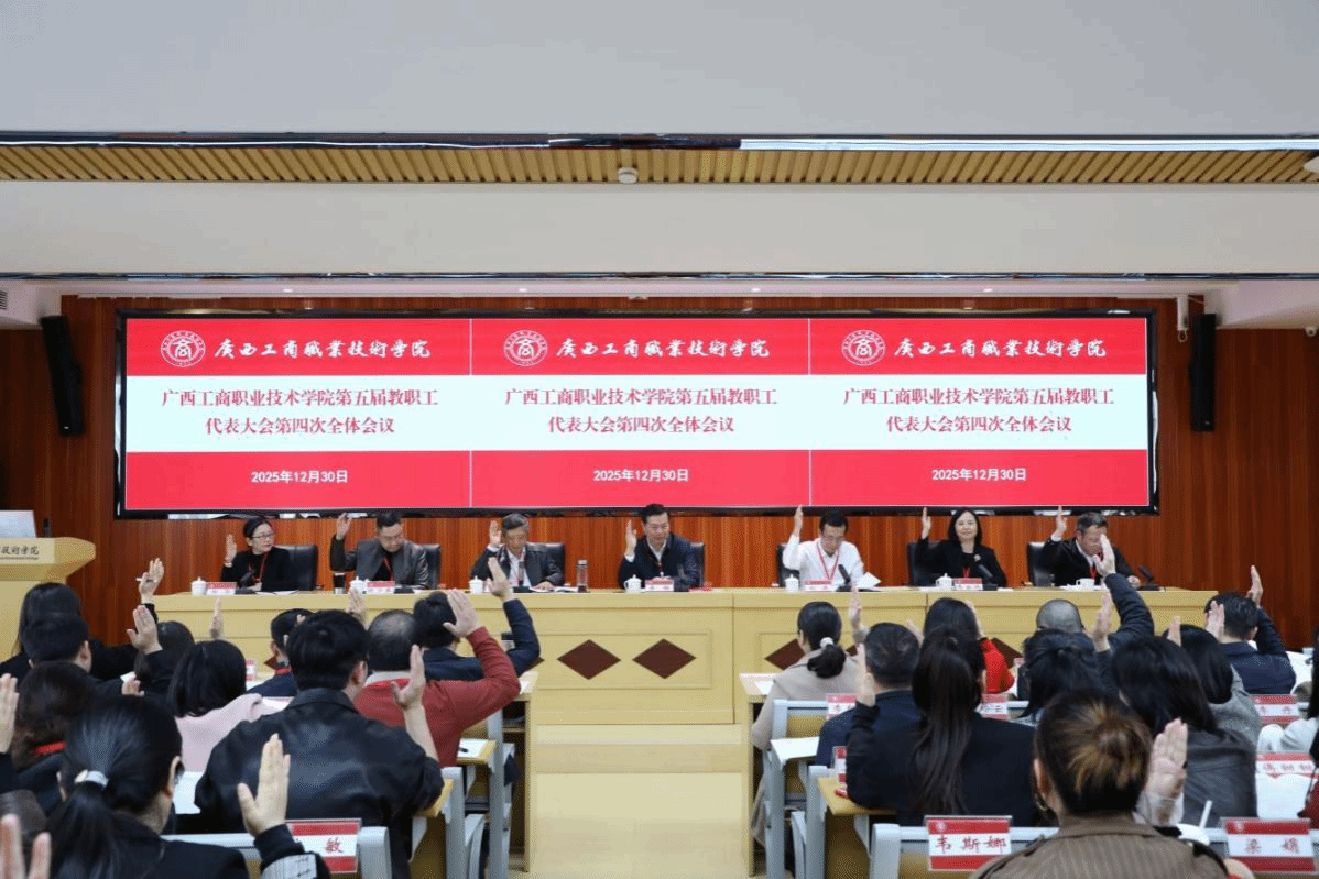12月30日,学校在鹏飞校区召开第五届教职工代表大会第四次全体会议。学校党委书记李维,党委副书记、校长刘进,党委副书记安仲文,党委副书记、纪委书记韦云凤,副校长陈宁春,副校长阙勇平,副校长郑华,来自全校各部门各单位的教代会代表、列席人员参加会议。