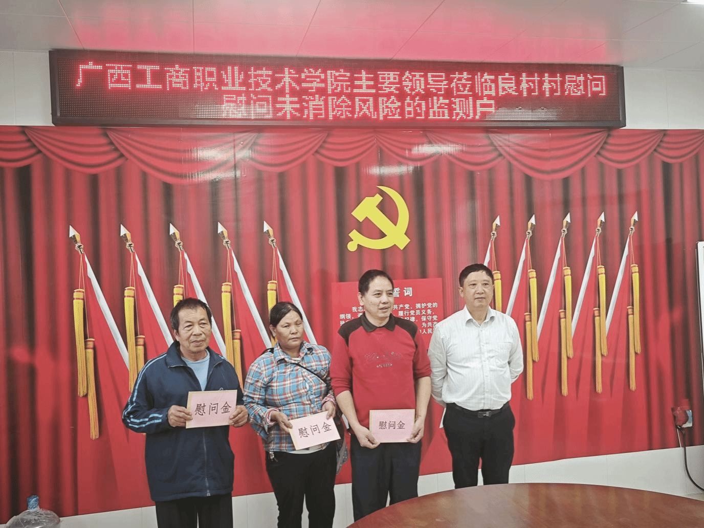 座谈会后,李维代表学校为驻村第一书记和工作队员,以及支持帮扶工作的村“两委”干部和未消除风险监测户送上慰问金,送去新春祝福和生活关怀,把组织的温暖实实在在送到驻村干部和基层群众手中。