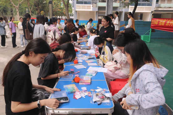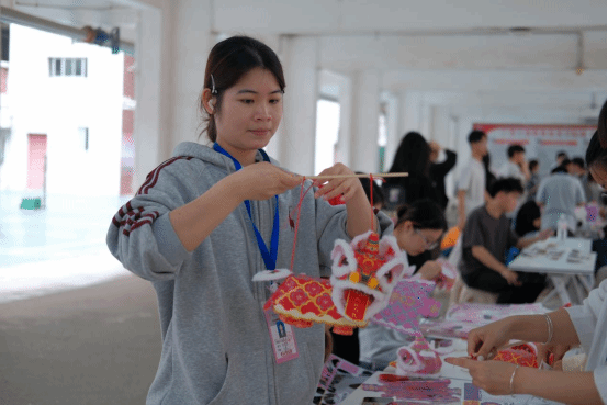 活动开展了非遗竹编制作、漆扇绘制、香囊制作、手绘团扇、折扇绘画、点茶活动、壮乡非遗绣球手作等活动。随着下课铃声响起,三个校区的活动现场逐渐热闹起来。武鸣校区“一站式”学生社区、A7、A11架空层,鹏飞校区3栋架空层,中尧校区风雨球场内人头攒动,由各学生社团精心布置的体验摊位错落有致,志愿者们热情洋溢。各活动得到了广大师生的积极响应与热情参与。在活动开展期间,各板块活动现场始终保持着较高的参与度,部分热门项目前排起了长队,同学们在动手实践中感受传统手工艺的魅力与趣味。