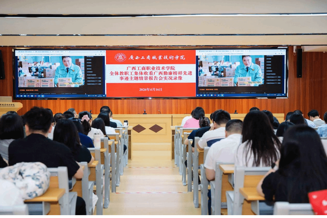 4月16日,学校在武鸣校区、鹏飞校区、中尧校区组织集体收看广西勤廉榜样先进事迹主题情景报告会,学习勤廉榜样先进事迹,大力弘扬新风正气。学校党委书记李维,党委副书记、校长刘进,党委副书记安仲文,副校长阙勇平,各部门、各单位负责人及全体党员、干部参加活动。