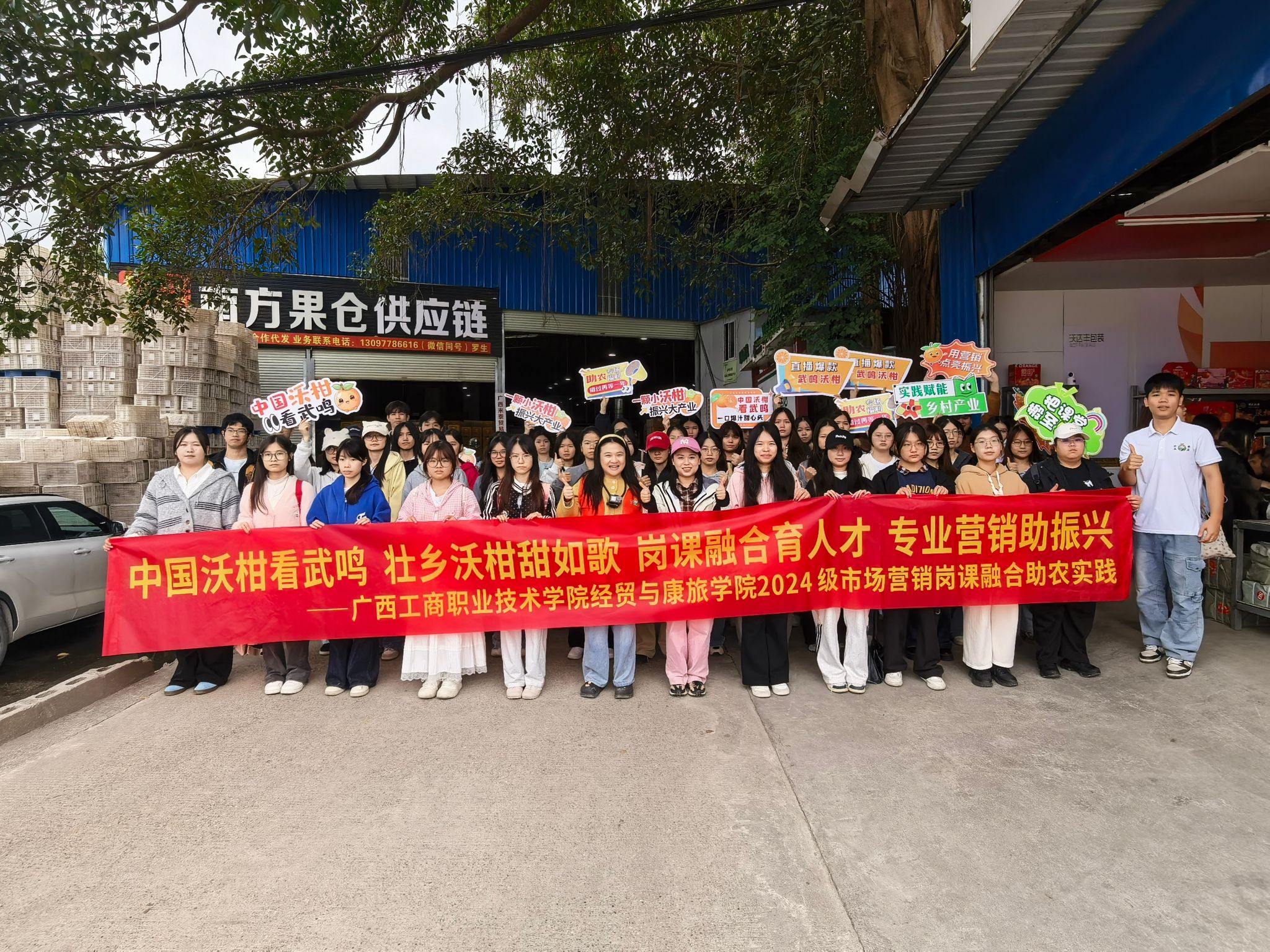 为深化岗课融合育人模式,将课堂理论与行业实践深度融合,切实提升市场营销专业学生的实践应用能力,12月23日,经贸与康旅学院市场营销专业教师带领2024级市场营销专业5个班级学生前往南宁武鸣区沃柑果园基地开展实地调研,沉浸式探寻沃柑产业发展密码。本次活动是2024级市场营销专业《岗课融合实践》课程的重要教学环节,旨在通过真实产业场景,提升学生市场调研、内容创作与营销策划能力。