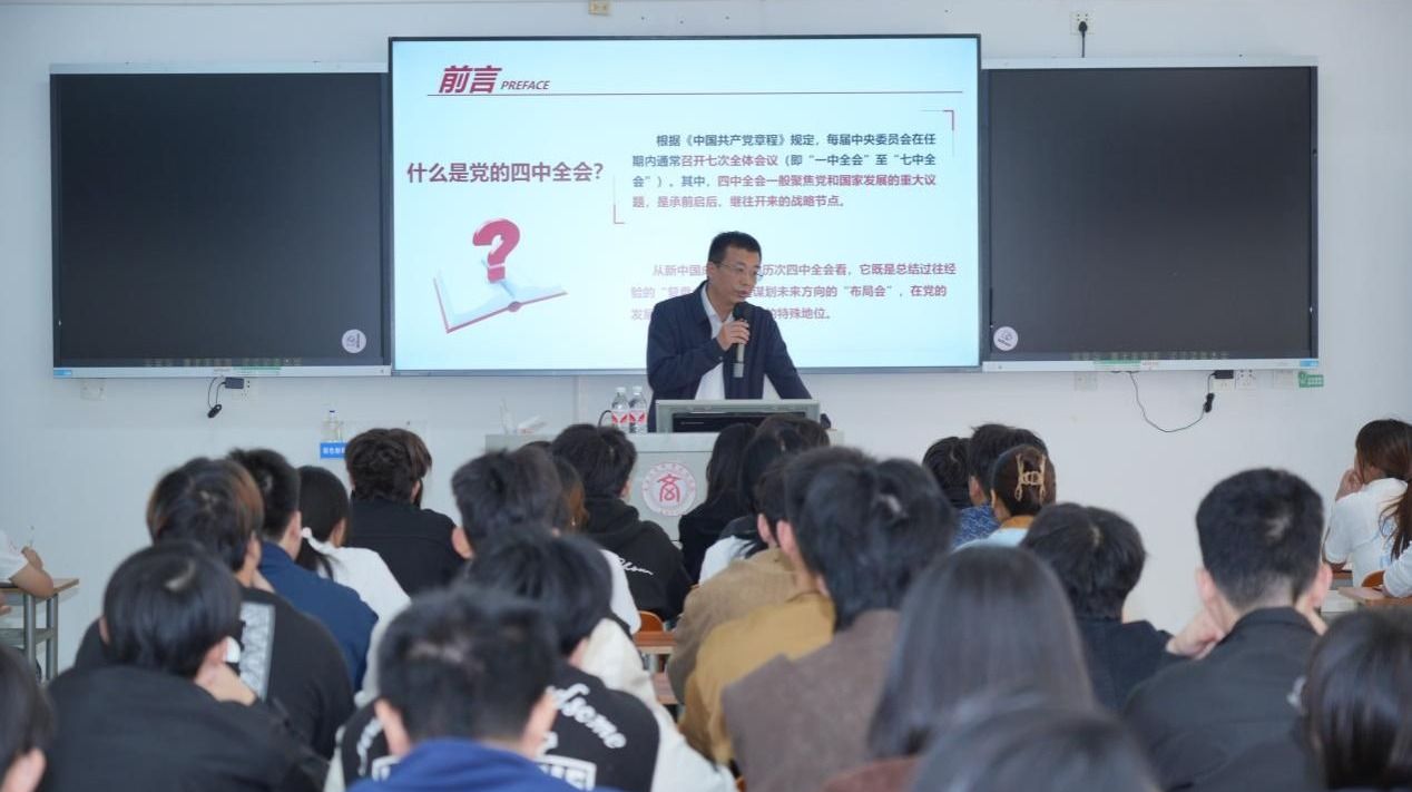 为深入学习贯彻党的二十届四中全会精神,提升思政课育人实效,2025年11月7日上午,学校副校长郑华以《深悟党的二十届四中全会精神实质 担当“十五五”奋进新使命》为主题,为视觉2402班同学讲授思政专题课。马克...